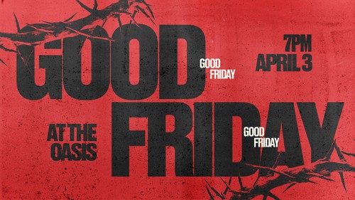 Join us Friday, April 3 at 7:00 PM for Good Friday Worship Night at The Oasis Church in Haslet, TX. This special service will be a meaningful evening of worship and reflection as we remember the trial of Jesus, His journey to the cross, and the sacrifice He made for us. Come with a heart ready to worship and remember the love that led Christ to lay down His life so we could be made free.